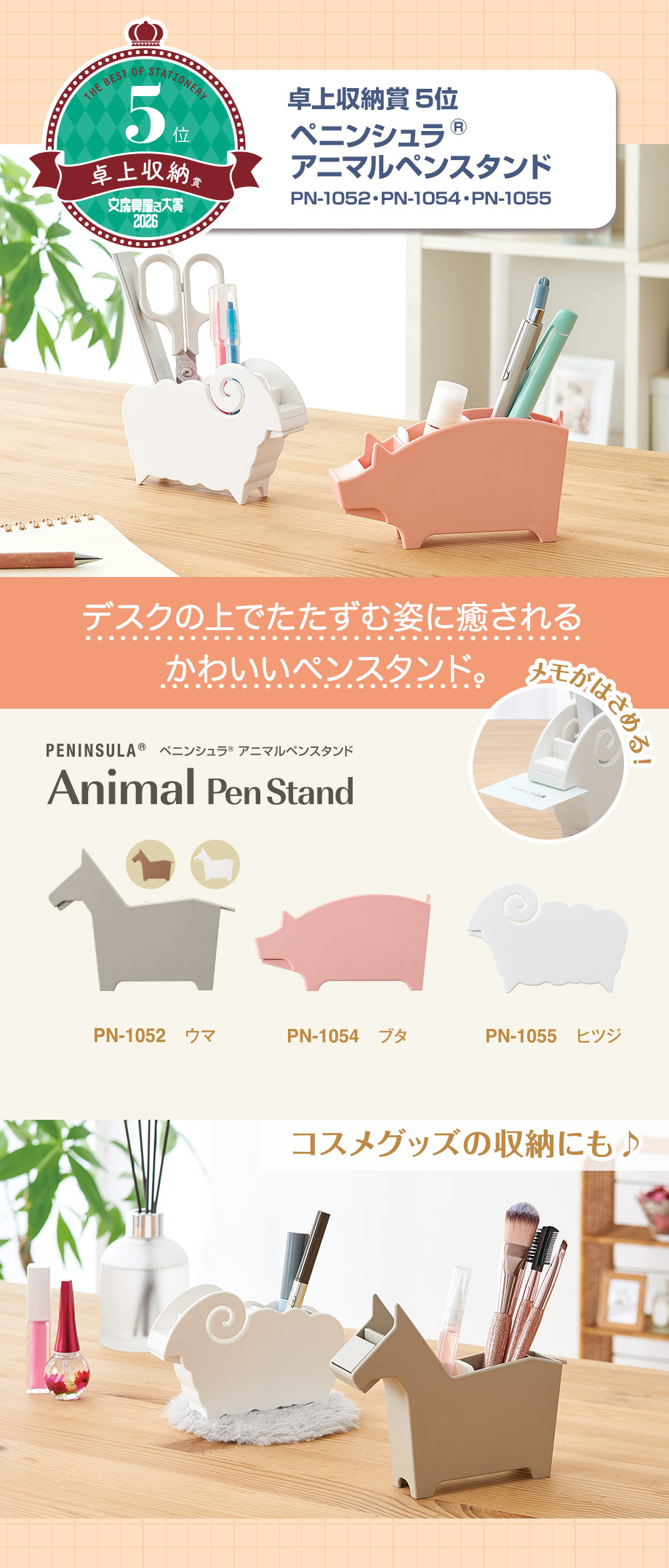 文房具屋さん大賞2026にペニンシュラアニマルスタンド、ベルポストペンケースが入賞しました!