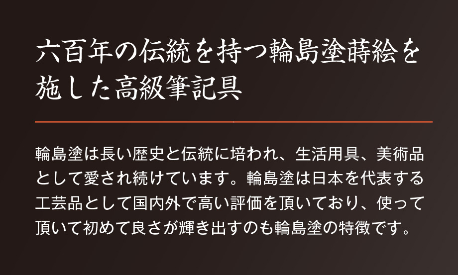 ●柄/10柄 ●軸材質/天然木(漆塗り仕上げ・蒔絵) ●サイズ/最大径∅13×全長146mm