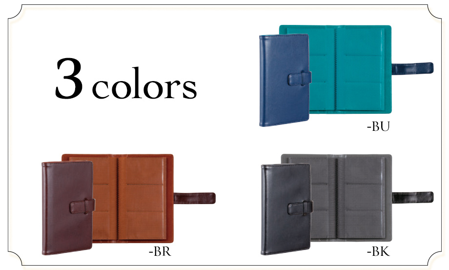 ●カラー3色 ●表地材質/PU ●裏地材質/PU ●中芯材質/紙 ●台紙材質/不織布(PPポケット)