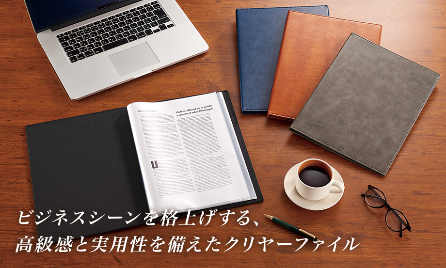 ビジネスシーンを格上げする、高級感と実用性を備えたクリヤーファイル。