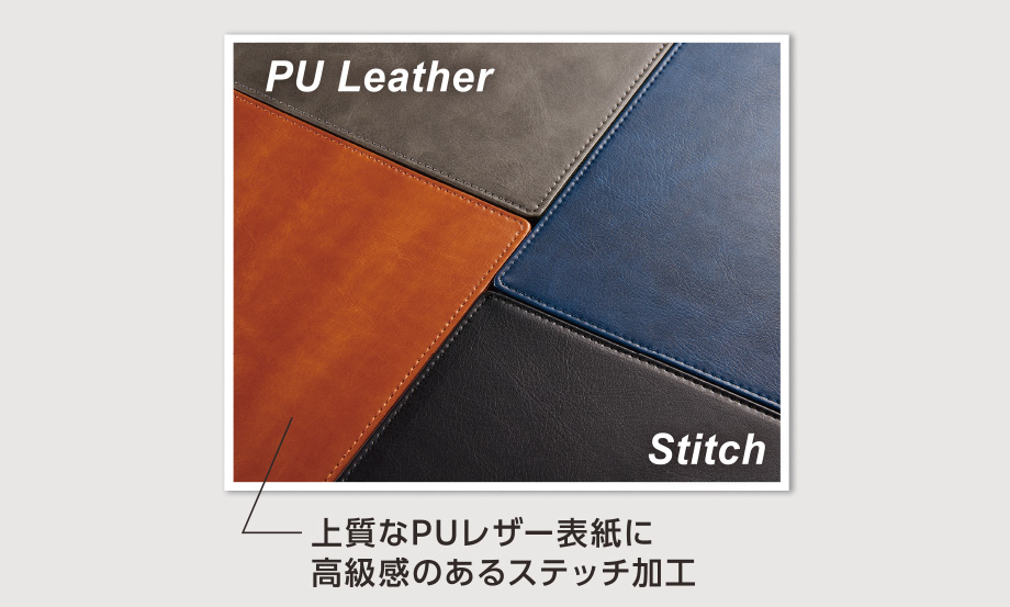 ●上質なPUレザー表紙に、高級感のあるステッチ加工が施されています。