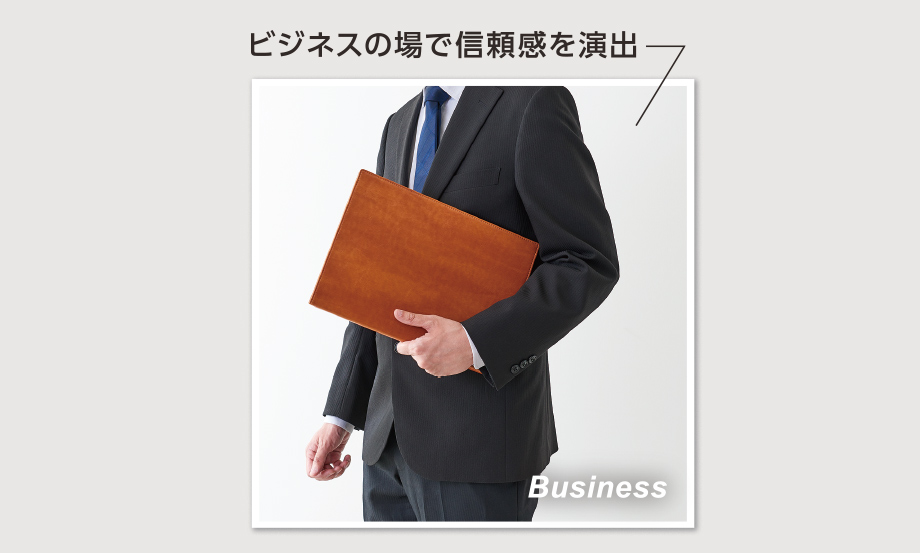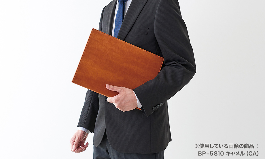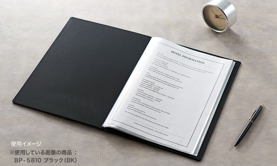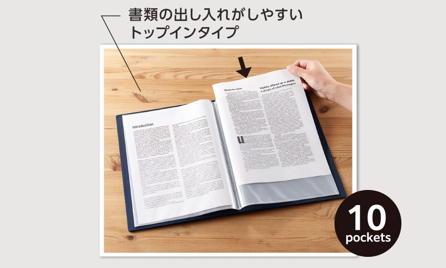 ●書類や写真が映える透明度の高いPPポケット。書類の出し入れがしやすいトップインタイプです。
