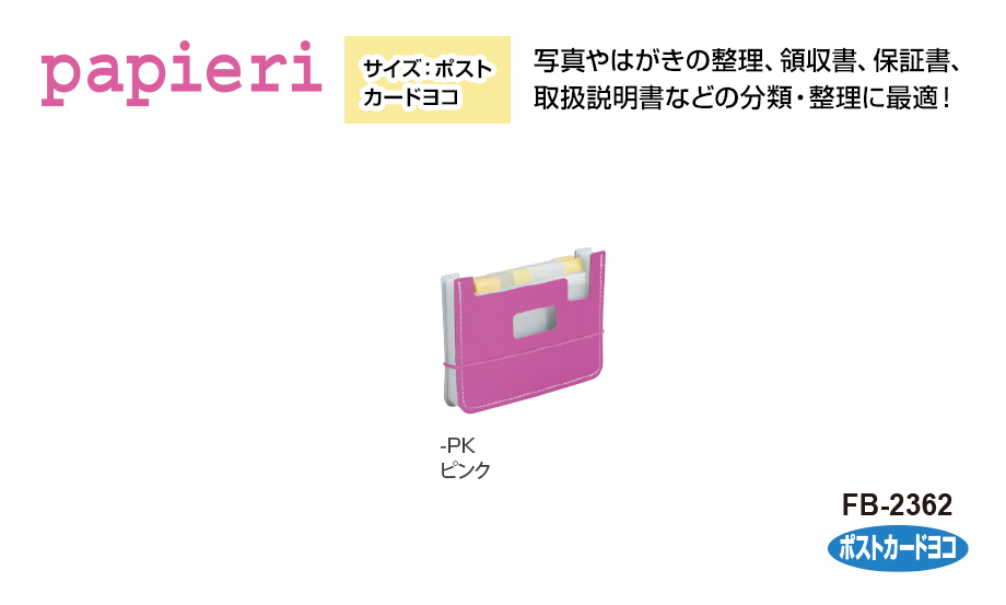| FB-2362 | 935円 (税込) | −21 ピンク(PK) | ※155411 | ポストカードヨコ 12仕切り 13ポケット |