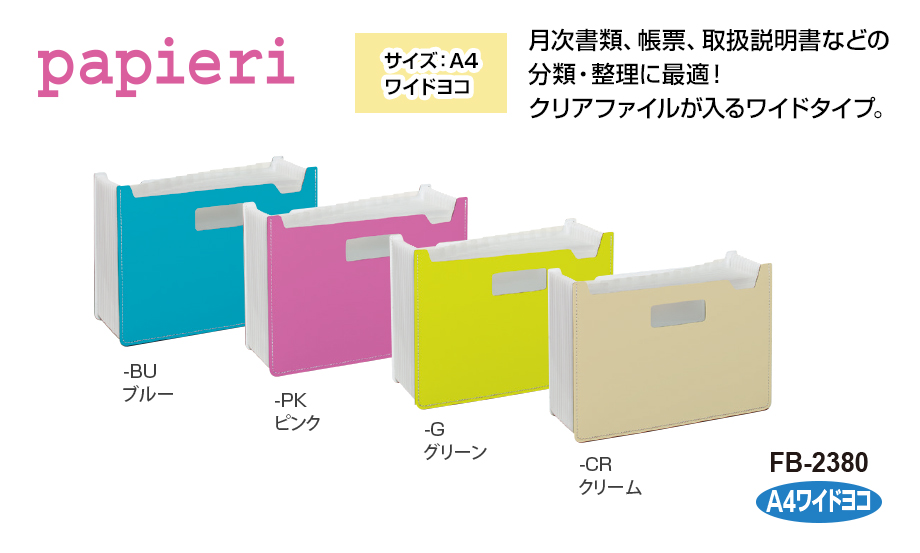 | FB-2380 | 1,650円 (税込) | −10 ブルー(BU) −21 ピンク(PK) −30 グリーン(G) −52 クリーム(CR) |
