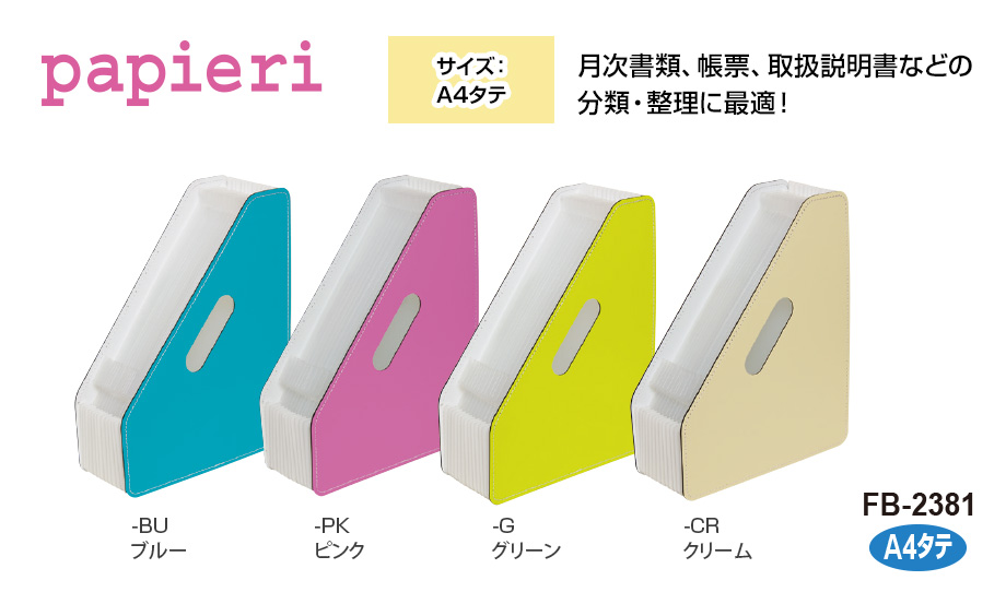 ●カラー/FB-2371:1色 FB-2381:4色 ●表紙材質/FB-2371:再生発泡PP 2.0mm厚 FB-2381:再生発泡PP 2.5mm厚