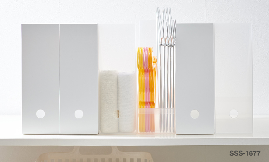 ●カラー/2色 ●本体材質/再生PP ●オフホワイト:不透明、クリア:半透明